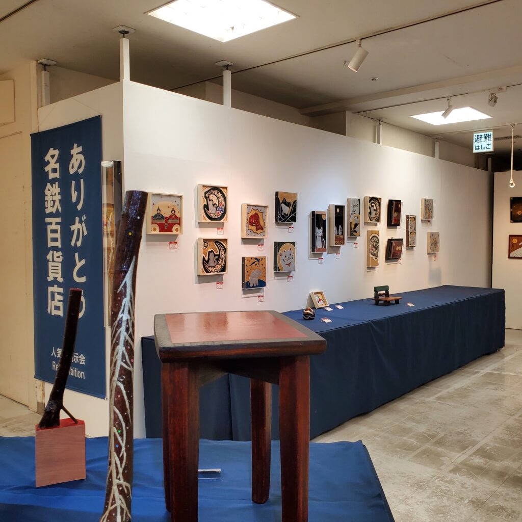 それから名鉄百貨店様が閉店が決まり、別館から本館への通路にあったCDショップが撤退され、そこが『めいてつアートストリート』となったとき、チャンスをいただきたいと、いち早く手を挙げたことが功を奏して、結果的に本当に多くの作家先生に発表の場をいただくことができ、実にたくさんの方々に観覧していただくことができました。また、なんとなく百貨店で美術品を売ることをここで学んだように思います。