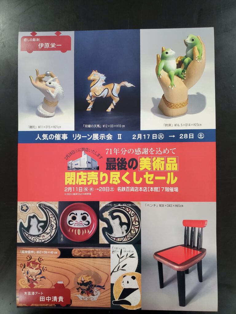 当法人は名鉄百貨店美術の最後の契約業者とならせていただき、数々の美術催事に参加させていただきました。